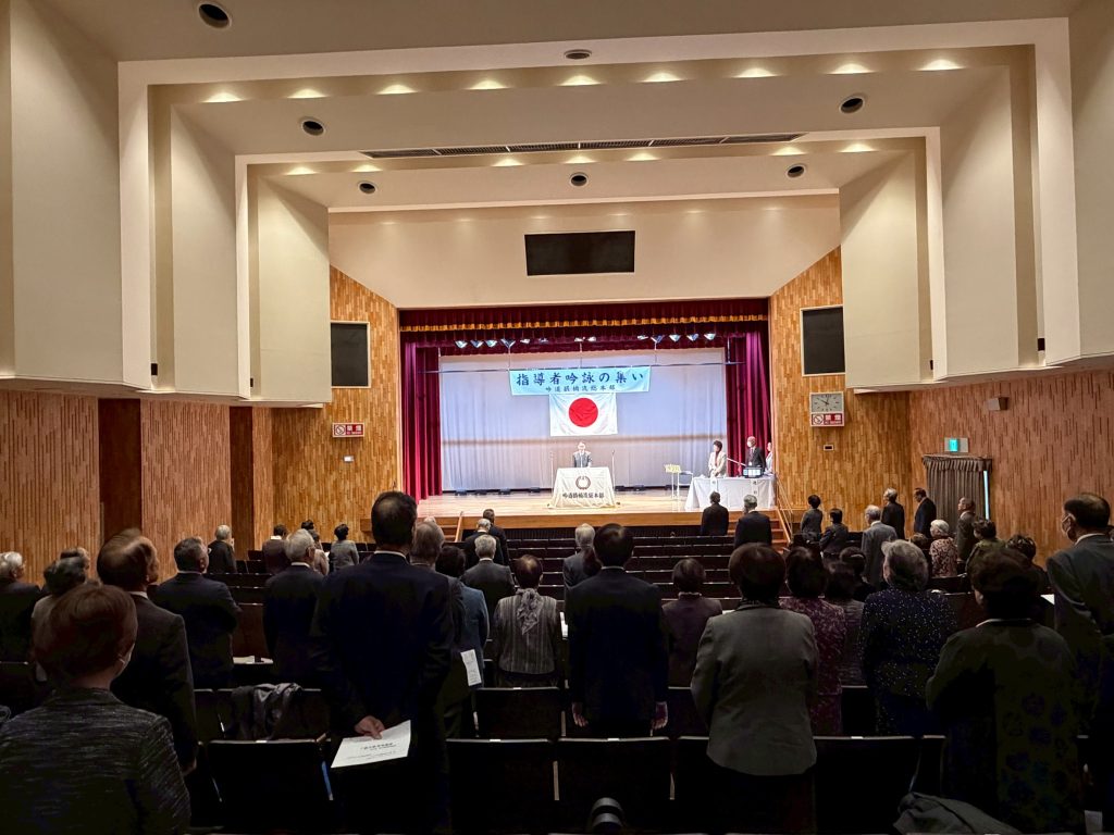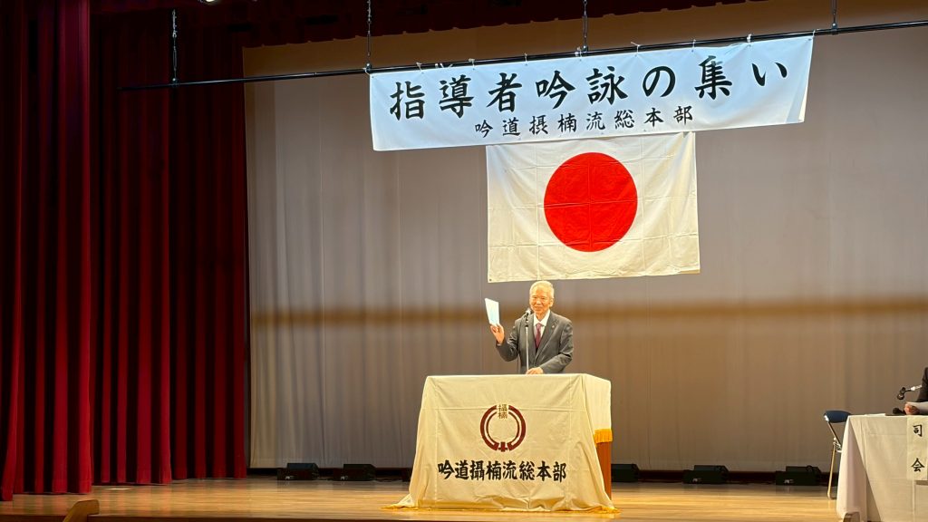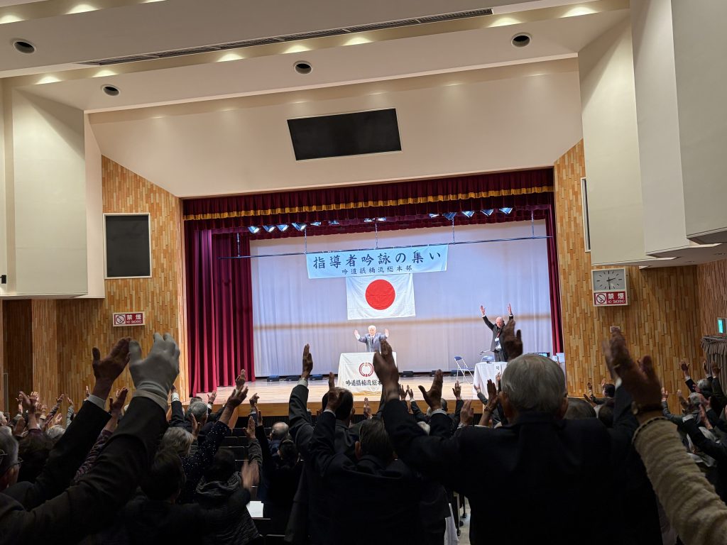 令和7年12月6日(土)姫路市立図書館飾磨分館大ホールにて開催されました。 沢山の指導者の先生方が参加され とても楽しい集いでした。 黙とう 総本部会長吟詠 宗家吟詠 講評 閉会の辞 万歳三唱 北川摂達先生の吟詠