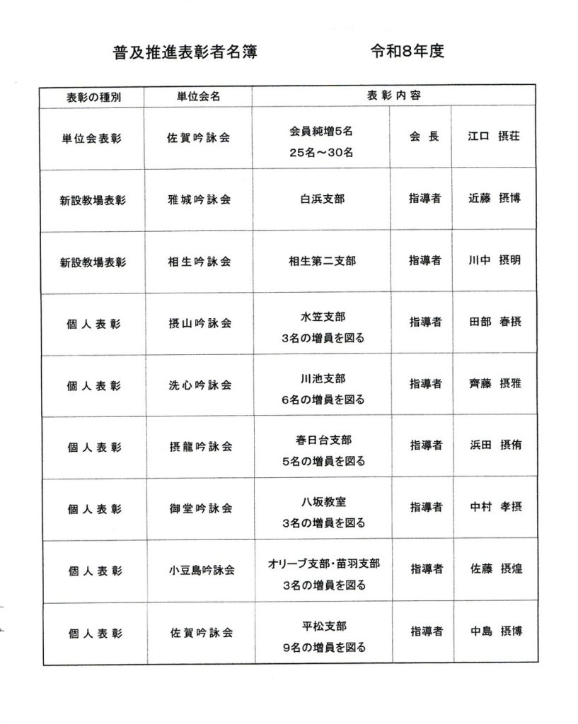 姫路キャッスルグランヴィリオホテルにて令和8年度吟道摂楠流総本部新年役員総会が開催されました。