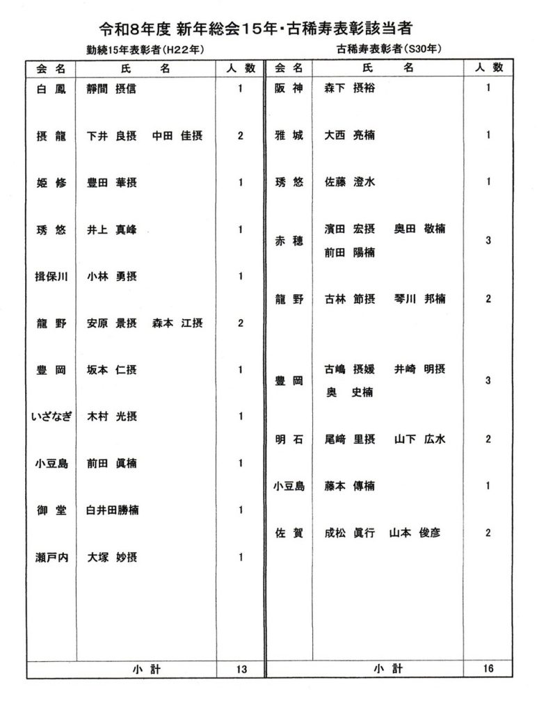 勤続15年表彰・古稀寿表彰 授与式